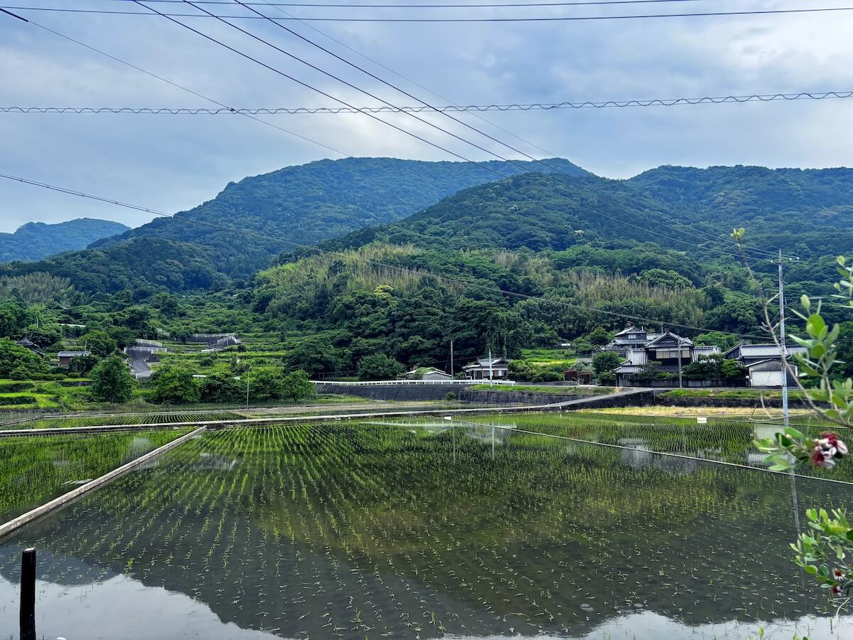 その向こうには、静かに連なる山並み。