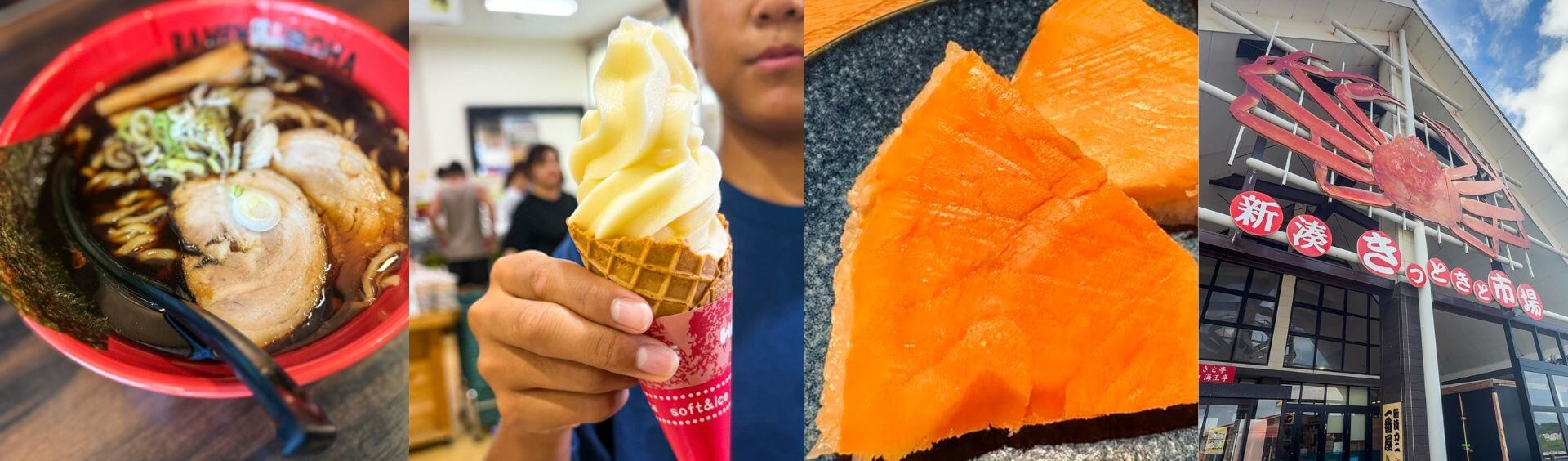 射水で食べた(買った)ものの一部(ブラックラーメンに白エビソフト!?、鱒の寿司などなど…)