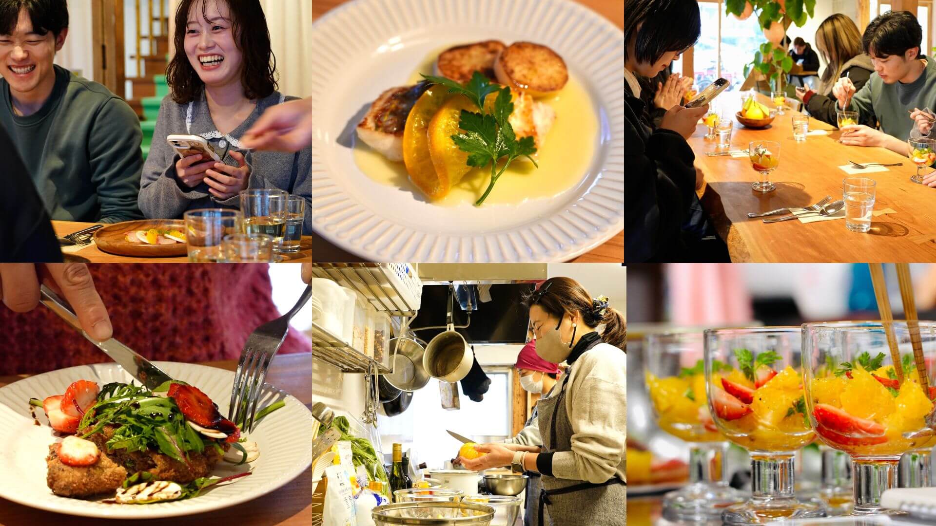 2日目のテーマ食材はいちご。こちらも生産者のハウス、川口ファームへ足を伸ばして収穫体験。今回は「まりひめ」と「よつぼし」という2つの品種を収穫させてもらいました。ハウスの中には甘い香りで満たされていて、それだけで幸せな心地に。「赤い宝石」を一つひとつ大切に採ってその場で口へ。甘みが強く、かつジューシー。まりひめは香りが甘く、味も優しい甘さ。よつぼしは濃厚で野菜みのある印象で、品種によってこんなにも味や香りが違うことに驚きました。濃厚ないちごがどんな料理になるのか試食にワクワク…!甘酸っぱさとフルーティーな香りがお肉との「マリアージュ」に最適とのことで、生ハムやカツレツに添えられたいちごたちを楽しみながら、さらにお酒との相性など想像も膨らむコースでした。今回は両日とも、農家さんも一緒にお食事をしましたが、お魚やお肉とフルーツを組み合わせた料理に驚きと刺激があったようです。デザートだけではないフルーツの可能性を感じられる時間となりました。