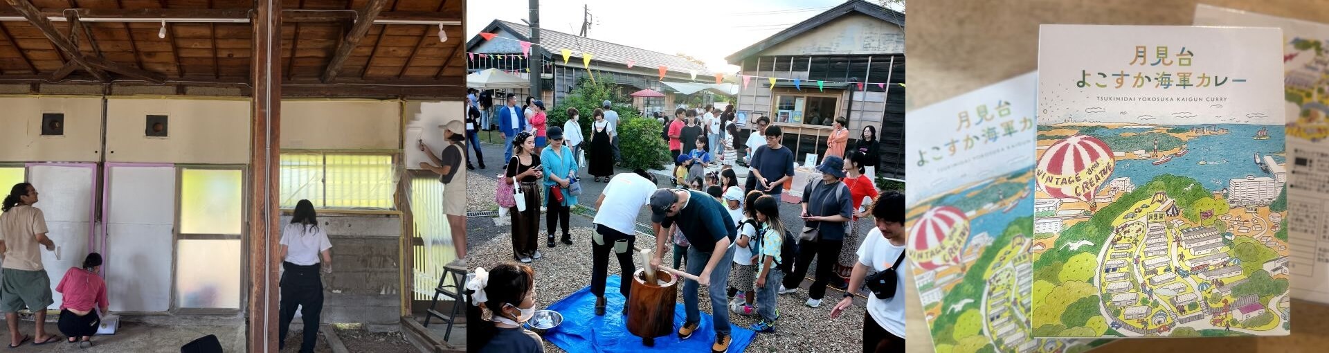 1期ファンドは募集額1億円に対し131.3%の応募。入居申込率も、ファンド募集と並行して100%に。数字だけ見れば「人気プロジェクト」の一言で済んでしまったかもしれません。それよりも私たちが月見台で設計したかったのは、数字の先にある「関係」。それは、投資家特典の内容を見ると分かるでしょう。共用部の壁塗りや土間づくりのDIYワークショップへの招待。月見台オープニングフェスへの参加。1週間の無料お試し出店。横須賀市の歴史的建造物を巡るVIPツアー。そして、月見台のプロジェクトイラストをパッケージにした「よこすか海軍カレー」の提供。どれも「横須賀に来る理由」になるものばかり。多くの投資家にとって、ここはもともと縁の深い場所ではないかもしれません。市民でさえ知る人の少ない旧市営団地。だからこそ、物理的にその場所と接点を持てる機会を、特典として設計したのです。